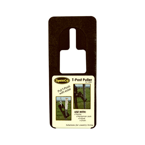 SpeeCo's Metal T-Post Puller allows the t-post to be removed from the ground with a tractor bucket, chain, Handyman Jack or a S-Hook. Its innovative slot design allows the use of different gauges of chain. Its simple and durable design is easy and quick to use.
